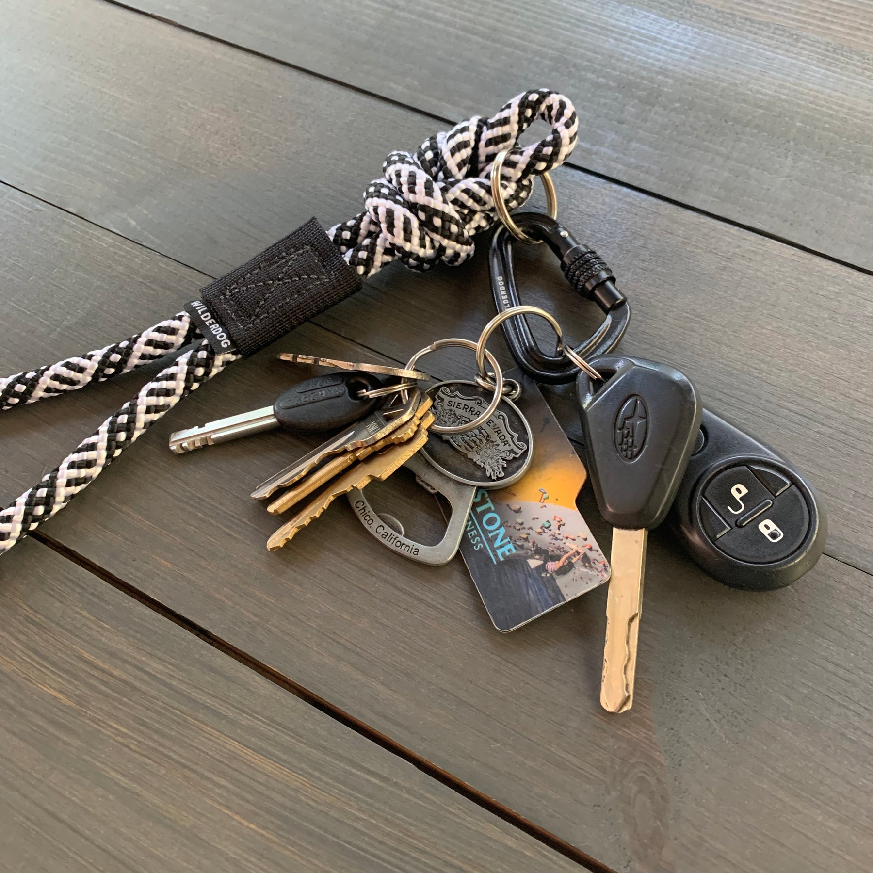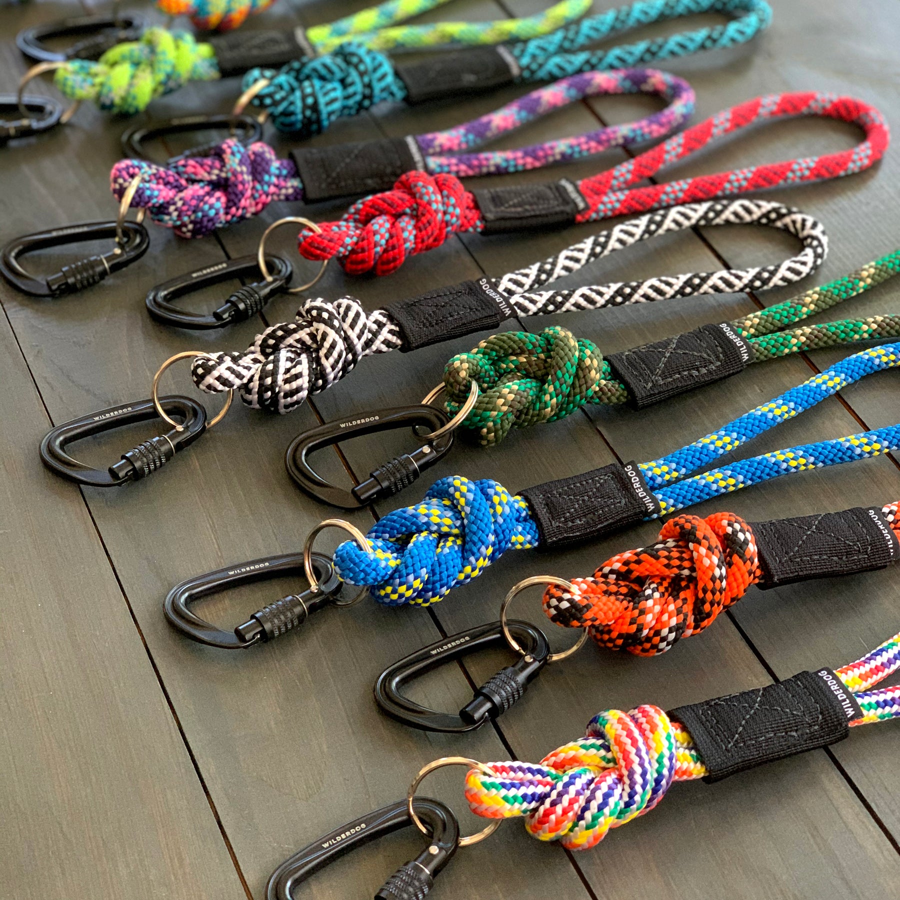 The dogs are secure on their Smartcart21 leash... but what about your keys?! Our rope lanyard key chains come with our small locking carabiner to clip to your backpack or pants loop to keep keys secure on all your adventures. The handle is big enough to fit around your hand, and secured by a figure 8 knot.