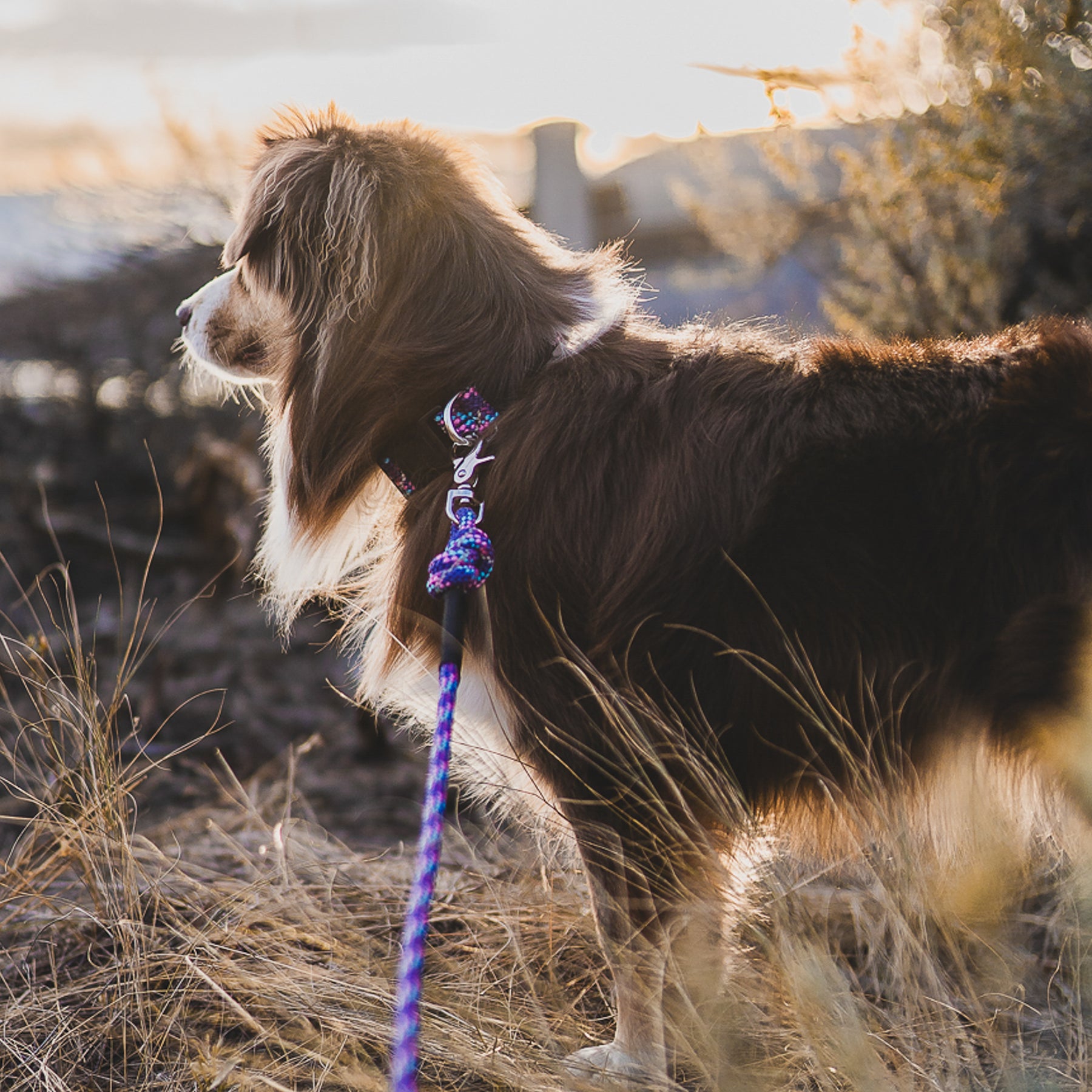 Our reflective leash has four strands of reflective tape woven into the rope for safer walks in low or no light.