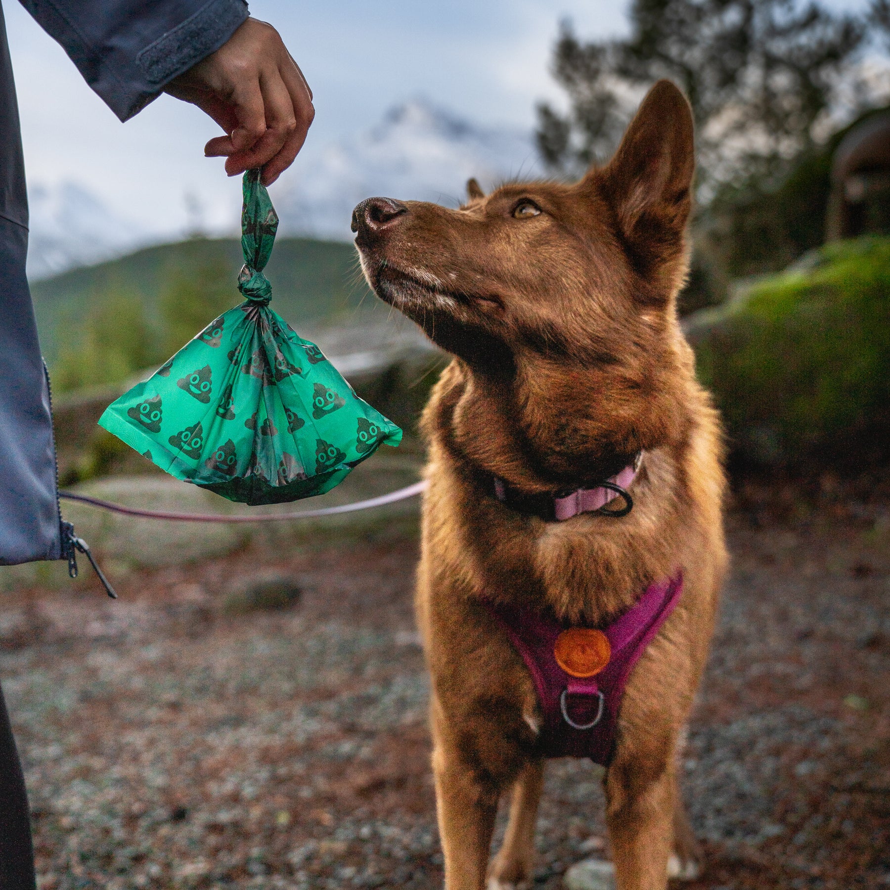 Made with PBAT, PLA, and cornstarch, our new compostable poop bags meet the DIN EN13432:2000-12 ASTMD 6400:2012-01 standards for compostability. Our box of compostable poop bags come with 120 bags for approximately one month supply. Happy poop-picking-up!