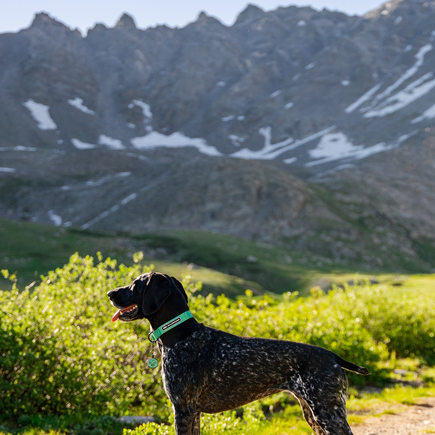Designed for dogs that want to be in all the action, we teamed up with our friends at Stio to bring their Teton-inspired designs to our super lightweight, super durable dog collar.